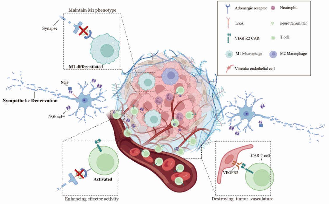 自分泌NGF scFv的CAR T细胞通过摧毁肿瘤部位的交感神经来增强其对实体瘤的杀伤活性