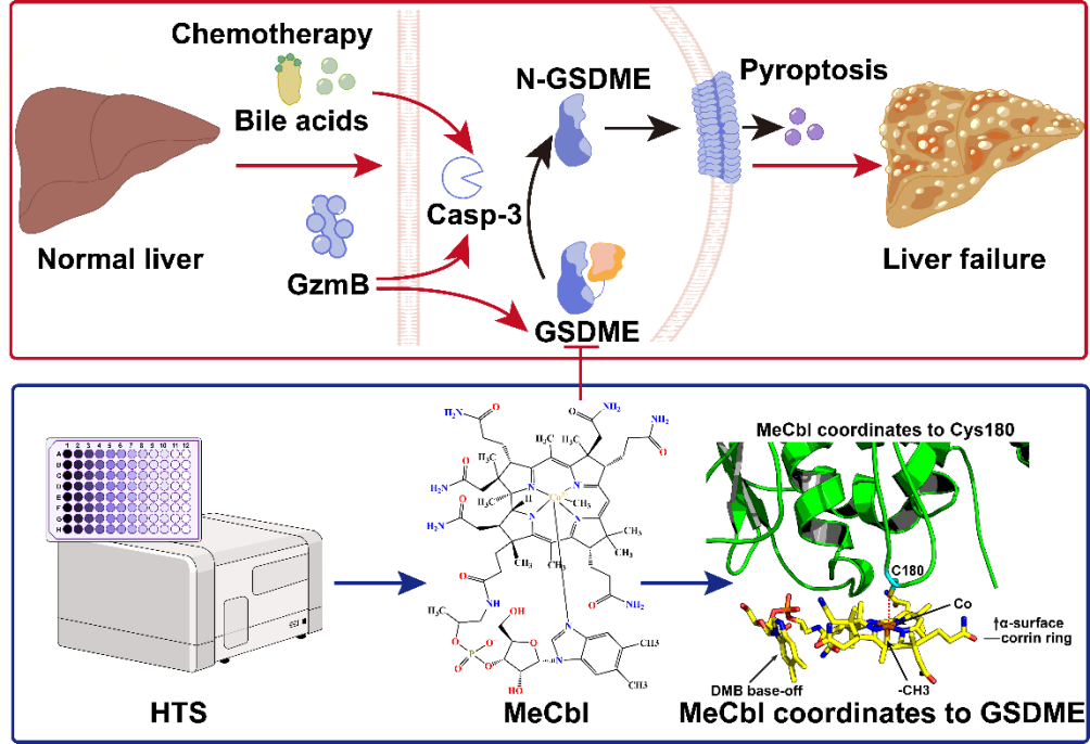 近日,我校郝海平教授团队在Nature Communications上在线发表了题为“Methylcobalamin protects against liver failure via engaging gasdermin E”的研究论文,发现内源性维生素B12甲钴胺是靶向GSDME的特异性抑制剂,能有效干预GSDME介导的肝衰竭。多靶标天然药物全国重点实验室曹丽娟研究员、药学院郝海平教授、孙慧涌特聘副研究员为本文共同通讯作者,药学院许万峰特聘研究员、王赟博士、崔双特聘副研究员和郑秋凌副教授为共同第一作者,世界杯直播为第一通讯单位。