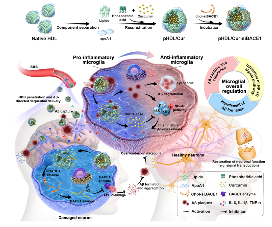 图2 pHDL/Cur-siBACE1的制备与“全链式”AD治疗示意图。