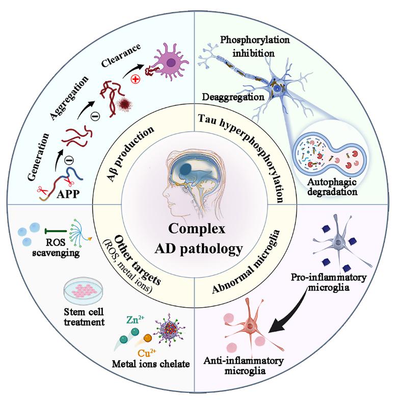 图1 基于AD病理机制及关键靶点的抗AD纳米药物开发策略示意图。