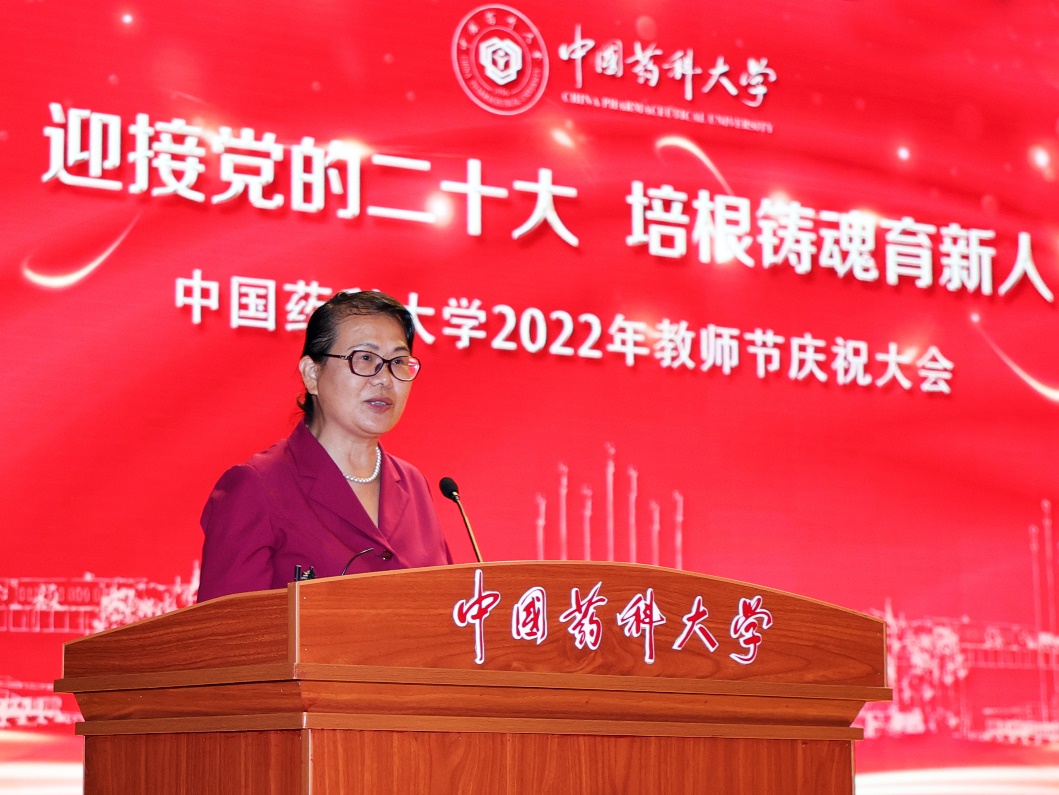 生命科学与技术学院曹荣月教授作为退休教职工代表发言,她饱含深情地回顾地回顾了从教38年来铭记“精业济群”的校训精神,钻研教学方法、苦思因材施教、引领青年教师成长、守候学生未来的工作历程。新入职教师代表药学院李苏昕特聘研究员在发言中回顾了在药大求学和工作过程中老师们对自己的谆谆教导,表达了对母校辛勤培育的感恩之情。
