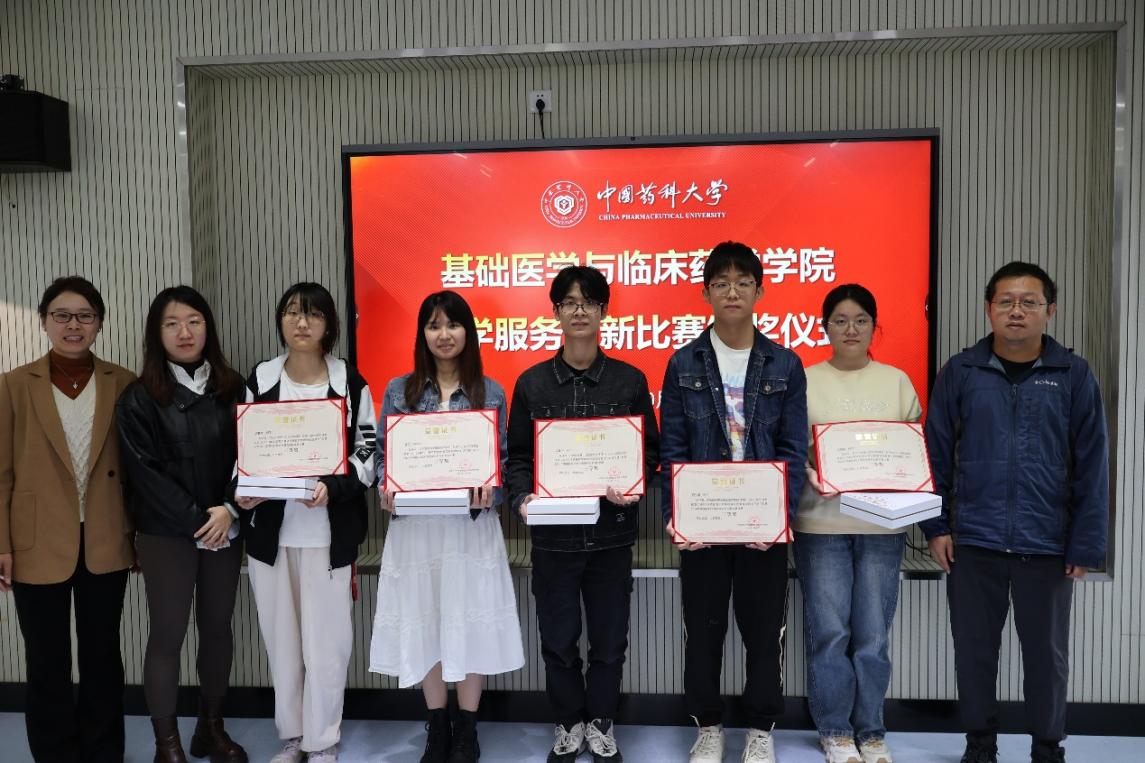 为进一步培养临床药学专业本科生的药学服务实践创新能力,推动“以患者为中心”的高水平药学服务发展,展现大学生在药学服务领域的创新创业成果与实践育人成效,近期,我院举办第一届药学服务创新实践比赛,并于10月22日在综合门诊楼举行颁奖仪式。教务处、基建后勤处、基础医学与临床药学学院、校门诊部有关负责人出席活动。