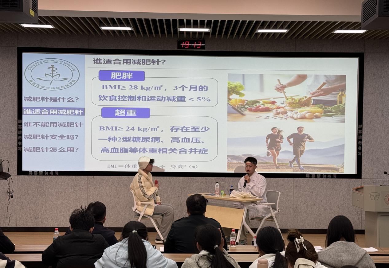 本次大赛自11月启动以来,受到全院学生的广泛关注与积极参与,累计收到30余支队伍报名。经过初赛选拔,共有10支队伍脱颖而出,晋级决赛。决赛围绕“安全合理用药”主题,呈现了形式多样、内容丰富的科普展示。参赛选手运用PPT、科普视频讲解专业知识,创新性融入情景剧、实景拍摄等生动形式,围绕“减肥药使用误区”“感冒药与退烧药的错误联用”“科学安排服药时间”“眼药水的正确使用方法”等贴近生活的用药场景,将复杂的药学知识转化为通俗易懂、富有趣味的情景故事,赢得现场阵阵掌声。每组展示结束后,评委老师均从专业角度进行提问与点评,深入解析安全合理用药的关键要点。