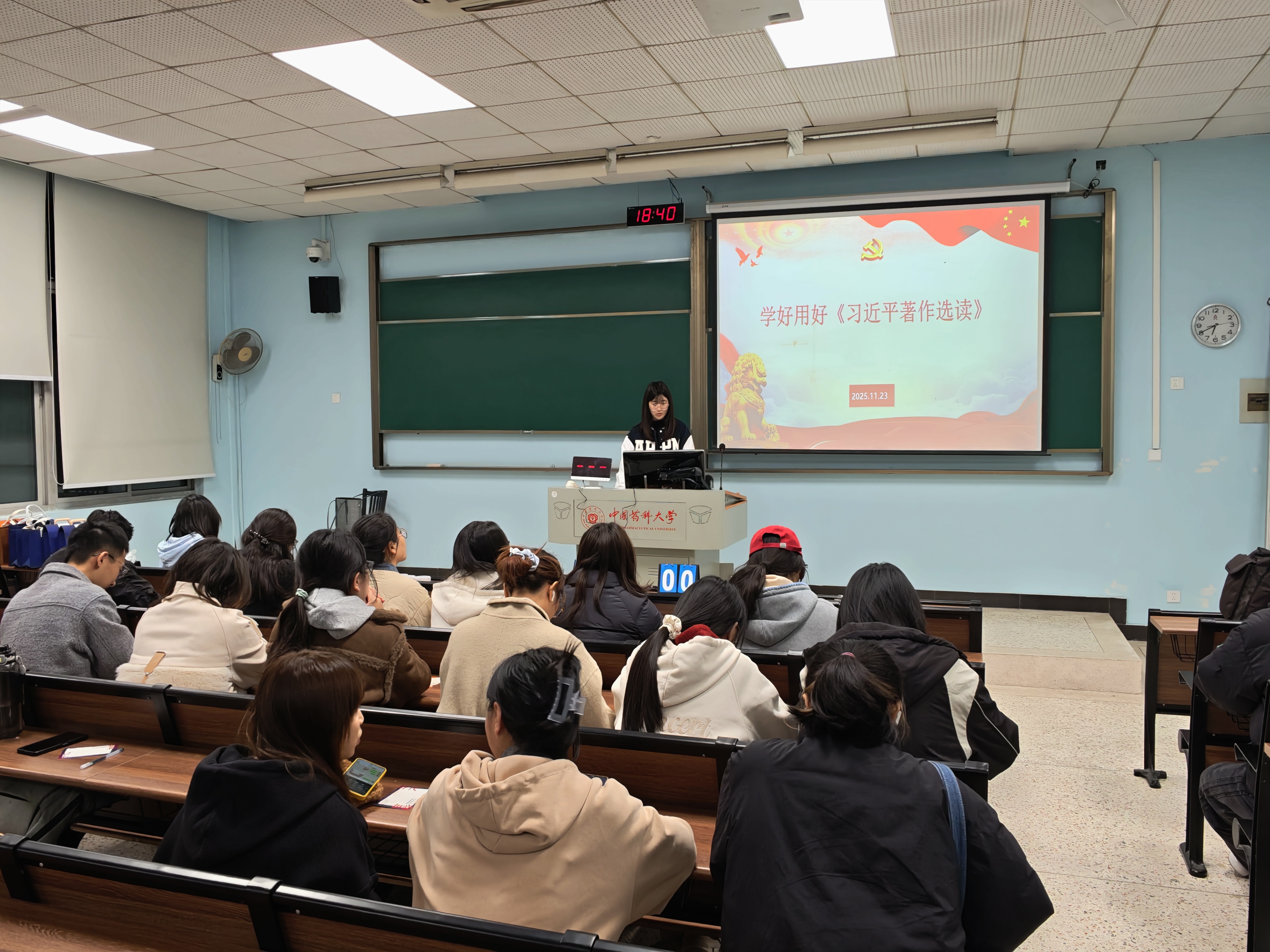 为深入学习贯彻党的二十届四中全会精神,赓续红色血脉,11月23日,我院硕士生玄武第一党支部在教学楼D110举办“红色精神润药心,青春聚力践初心”主题党日活动。