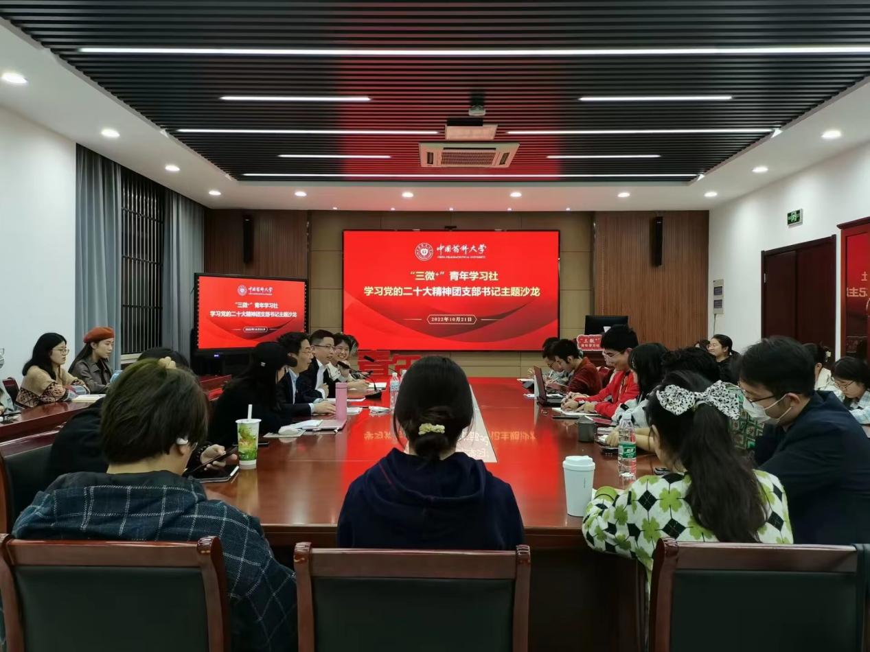 1021日晚,在学院“三微+青年学习社团支部书记主题沙龙活动上,我院党委书记许书宏书记以“掌舵领航,举旗定向,创造新伟业的政治宣言”为题,从党的二十大报告的主要内容、新的提法和学习贯彻党的二十大精神等三个方面,结合工作实践和思考,援引党史故事和案例,深入浅出地分享了自身学习党的二十大报告的体会和感受。校团委副书记姜玉涛表示团学骨干要发挥带头作用,引导青年学生学深悟透党的二十大精神,听党话、跟党走。
