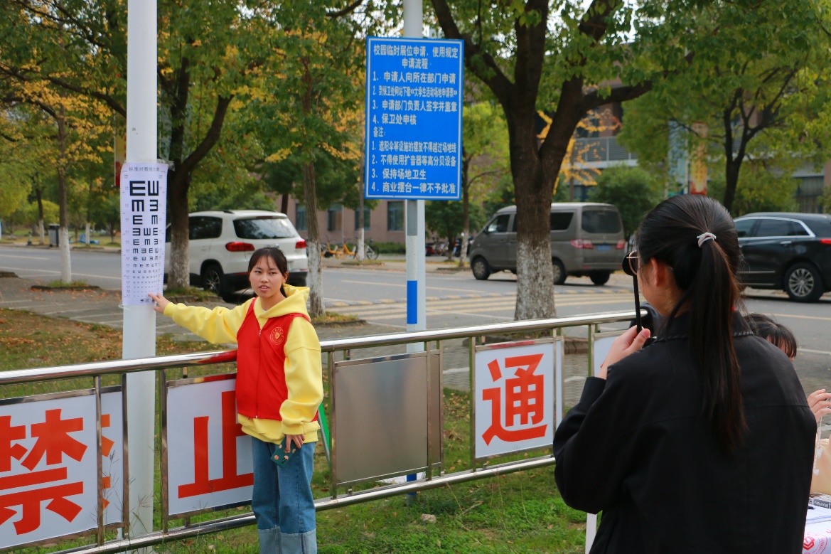 志愿者指导同学测量视力