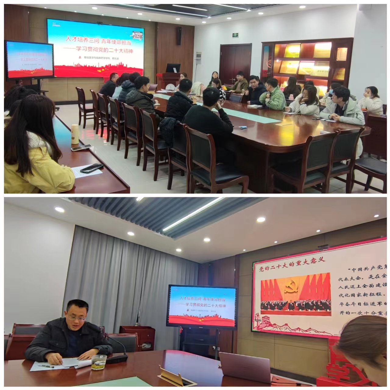 11月30日,我院药学(临床药学)校内研究生党支部在江宁校区医学楼102会议室召开党员大会,学院党委副书记郭志波、研究生辅导员陈成、贺煜星列席参会。