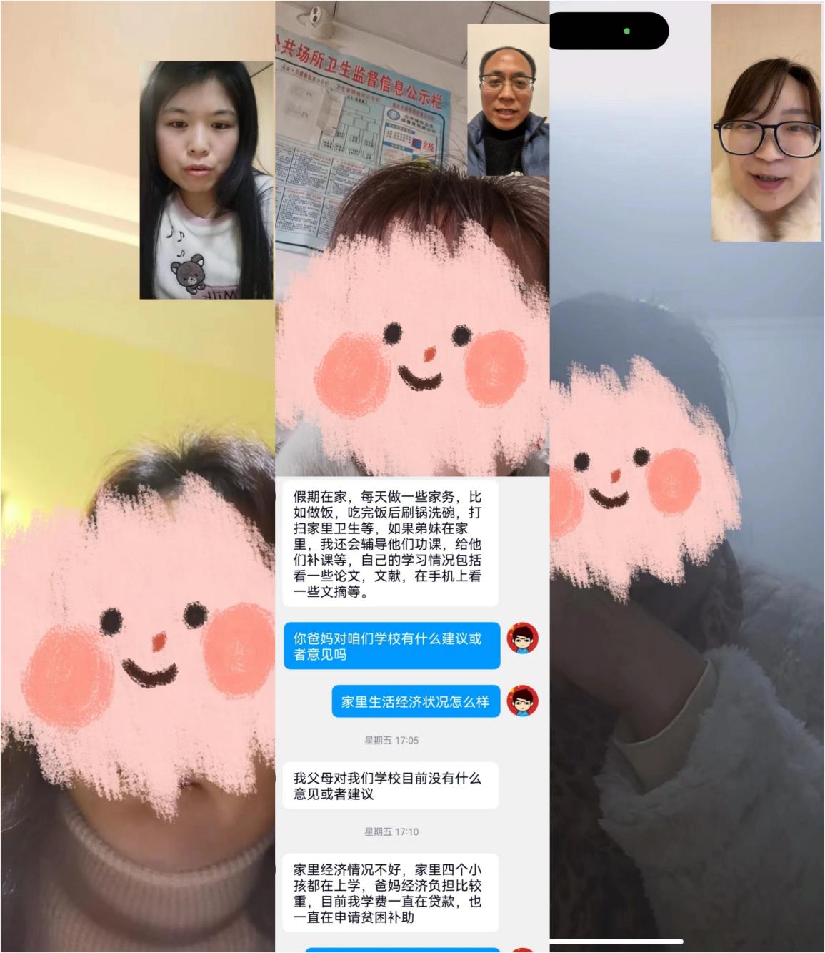 为进一步了解学生家庭情况和成长环境,精准做好资助育人工作,促进学生健康成长成才,按照学校寒假工作整体安排,院于20231-2月开展了寒假线上“云”家访活动。