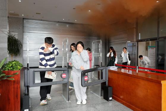 图书与信息党委联合保卫处开展消防疏散演练活动