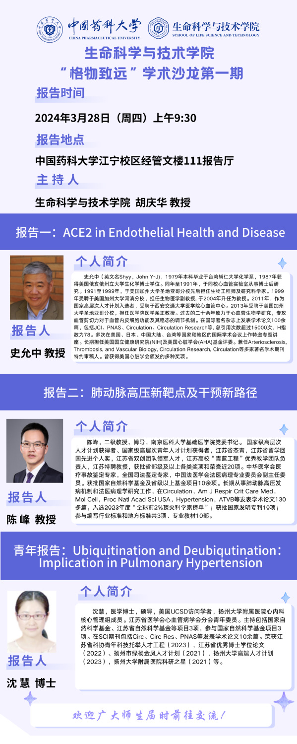 Venue: Lecture Hall 111, Economics and Management Building, Jiangning Campus, China Pharmaceutical University