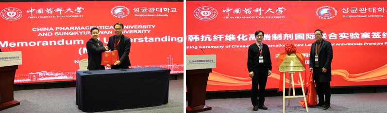 During the event, Prof. Xu Ming, Director of Office of International Exchange and Cooperation, CPU and Mr. Sang-Jeon Chung, Dean of the School of Pharmacy of Sungkyunkwan University, signed a Memorandum of Understanding (MOU) on behalf of the two universities, marking a new chapter of cooperation between the two sides. In addition, Prof. Hulin Jiang of the School of Pharmacy and Prof. Jee-Heon Jeong of Sungkyunkwan University, on behalf of the laboratories of the two universities, inaugurated the “China-Korea International Joint Laboratory of High-end Antifibrotic Agents”, which is designed to promote the two sides to carry out a higher level in the field of antifibrotic research and to promote a wider range of in-depth exchanges and collaborations, This platform aims to promote the two sides to carry out higher level and wider scope of in-depth exchanges and collaboration in the field of antifibrosis research.