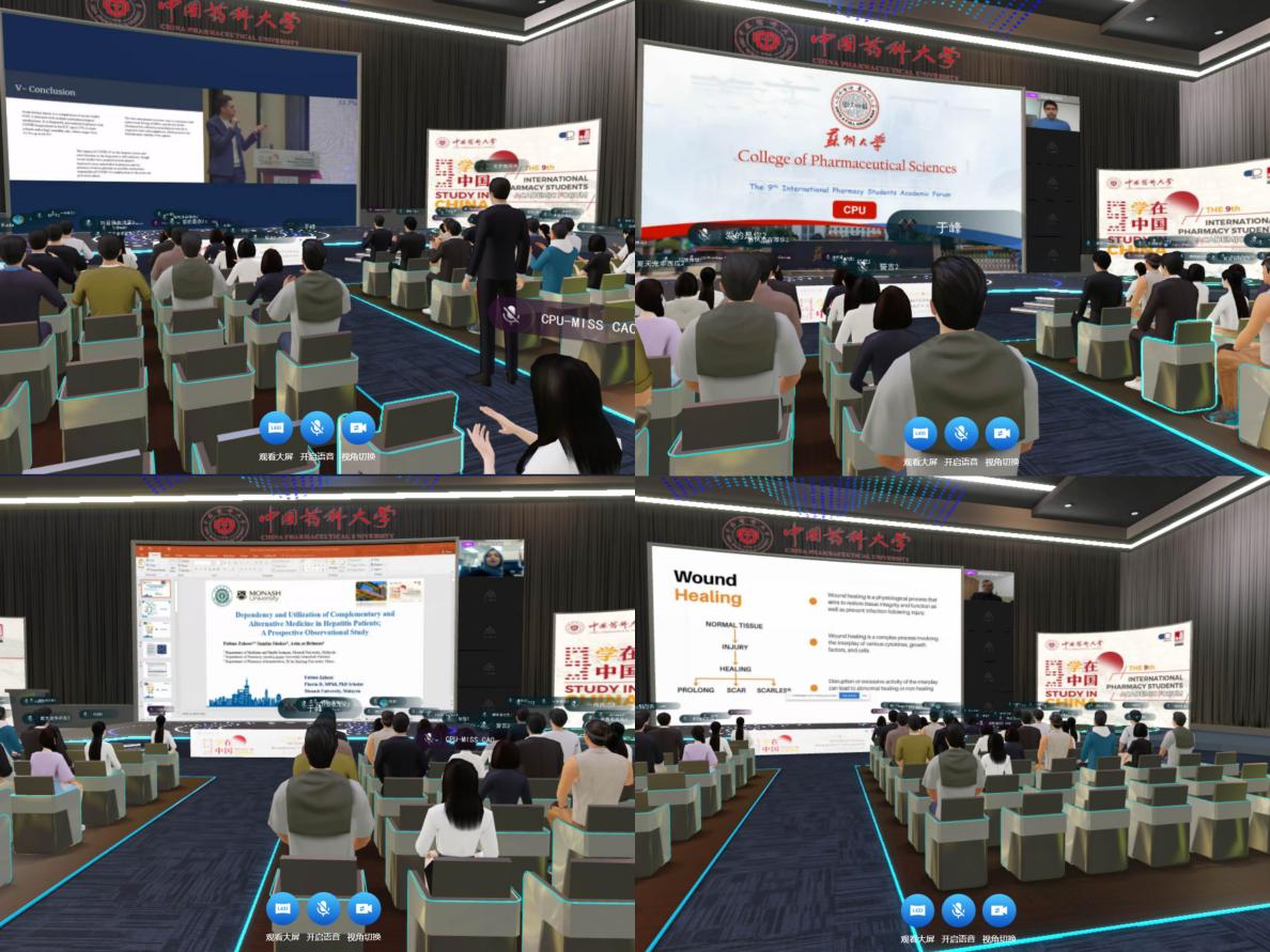 Subsequently, Liu Jinghui, President of CAFSA, delivered an online speech. On behalf of CAFSA, she warmly congratulated the successful convening of the forum. She emphasized that promoting the opening-up of higher education is inevitable for a powerful nation of education, and the education of international students in China is one of the important measures to promote the opening-up of education. CAFSA highly recognizes the achievements and influence of the International Pharmacy Students Academic Forum of China Pharmaceutical University, encourages the continuous and wide-ranging academic exchanges and cooperation, and actively innovates new forms of international cooperation and academic exchanges. She fully affirmed the Metaverse virtual venue adopted by the academic forum, and said that CAFSA will increase its support and guidance for the forum, and work together with China Pharmaceutical University to make greater contributions to the vigorous development of international students' education in China.