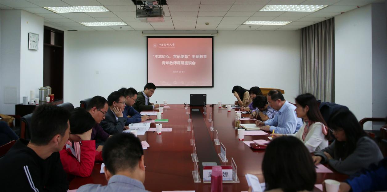 为贯彻落实学校党委关于深入开展“不忘初心、牢记使命”主题教育的重要部署,10月14日下午,学校组织召开加速“双一流”内涵建设的科学路径专题调研,调研座谈会在行政楼301会议室举行,副校长陆涛出席并主持会议,研究生院副院长刘燕莉及二级学院青年教师代表参加会议。