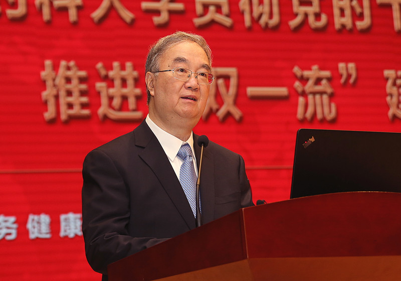 第十一届全国人大常委会副委员长桑国卫院士表示,今天作为一名“药大人”感到非常高兴,并向学校全体师生员工表示衷心的祝贺和诚挚的问候!他指出,学校经过80余年的建设发展,已成为在药学领域特色鲜明、享有国际声誉的知名学府,特别是今年9月,学校成功进入国家“双一流”建设高校行列,抓住了这一促进改革发展、提升内涵质量的历史性机遇。桑国卫院士希望学校深入学习好、领会好、贯彻好习近平新时代中国特色社会主义思想,切实把思想和行动统一到党的十九大精神上来;精准服务国家战略,对接医药行业需求,充分发挥学校的学科优势、科研优势、人才优势,加快建设世界一流学科,为实现医药大国向医药强国的转变贡献才智和力量;同时,落实新发展理念,强化顶层设计,进一步深化体制机制改革,努力探索和建设符合世界杯直播校情的特色“双一流”发展之路,在世界一流药学学科群和国际知名的高水平研究型大学建设的过程中迈出更加坚实的步伐。
