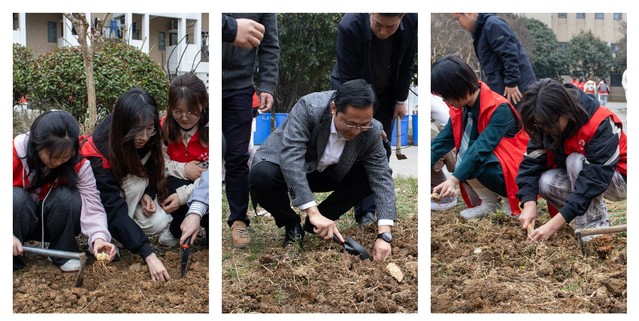 随后,与会师生在文菁苑社区开展打造社区花圃、整理自行车等美化社区志愿服务活动。文菁苑社区内,大家热情高涨,随杨勇副校长一道种下一株株百合、芍药和麦冬苗,为文菁苑社区播下了美的种子和希望。