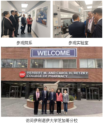 本次访问主要从高层次人才联合培养、中外教师交流、科研合作等方面展开。访问伊利诺伊大学芝加哥分校期间,我方就对方的学院设置、教学理念、优势专业、设施设备进行深入了解,充分探讨合作。依托对方在临床药学实践及药师培训方面的优质资源,双方在开展临床药学领域学生联合培养项目、国际师资培训等方面达成合意,并计划与我校签署框架合作协议。