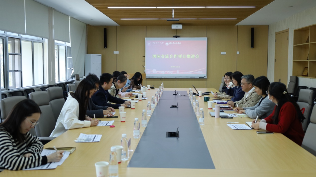 交流会上,国际交流合作处副处长刘潇璇全面介绍了学校国际化工作的整体情况,并重点围绕商学院教师可参与的外国专家项目、国家重点研发计划等国际合作项目,以及面向商学院学生开放的交流项目等方面进行了详细阐述。随后,双方代表就药学国别区域研究中心的建设与运行、师生出国交流项目、联合举办国际会议,以及拟拓展的国外合作院校与项目等重要议题,展开了热烈而深入的讨论。