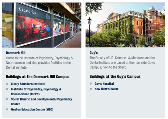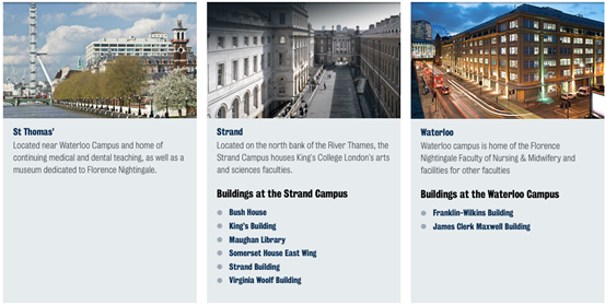 伦敦国王学院在伦敦市区有五个校区。