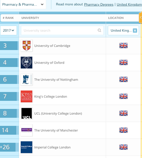 1.King’s药学全球排名
