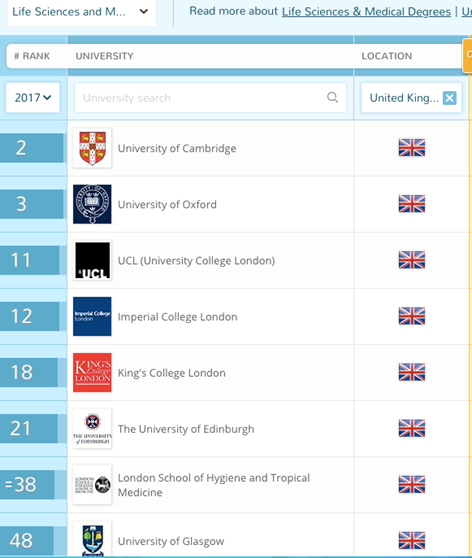 2.King’s生物科学与技术全球排名