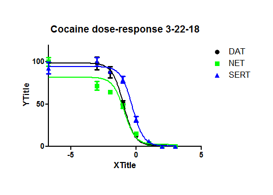 首先实验方面,我是在德雷赛尔大学医学院的Dr.Mortensen实验室实习。Mortensen教授本人和实验室的博士后主要负责检查我的实验进度并且下达实验指令,硕士师姐主要负责训练我各种实验技能。在三个月中,通过师姐的教授,我独立完成了包括dose-response,kinetics和biotinylation在内的三个实验。基本圆满地完成了Dr.Mortensen交给我的小项目。在此期间,我对细胞培养,western blot等技术有了更深的认识,并且掌握了这些技术。在理论知识方面也对神经药理学和药物成瘾性有了更深的认识。在做实验的过程中,我的责任心也得到了培养,为了保证自己的实验按期完成,我经常周末主动加班。养成了对自己的事情负责的好习惯。Dr.Mortensen在我做试验期间经常关心我的实验进度,每隔一段时间会询问实验情况和对我的实验进行一些建议。他也十分关心我是否懂得实验目的,不止一次督促我阅读有关文献,耐心解答我不懂的问题。以下是一些实验数据展示: