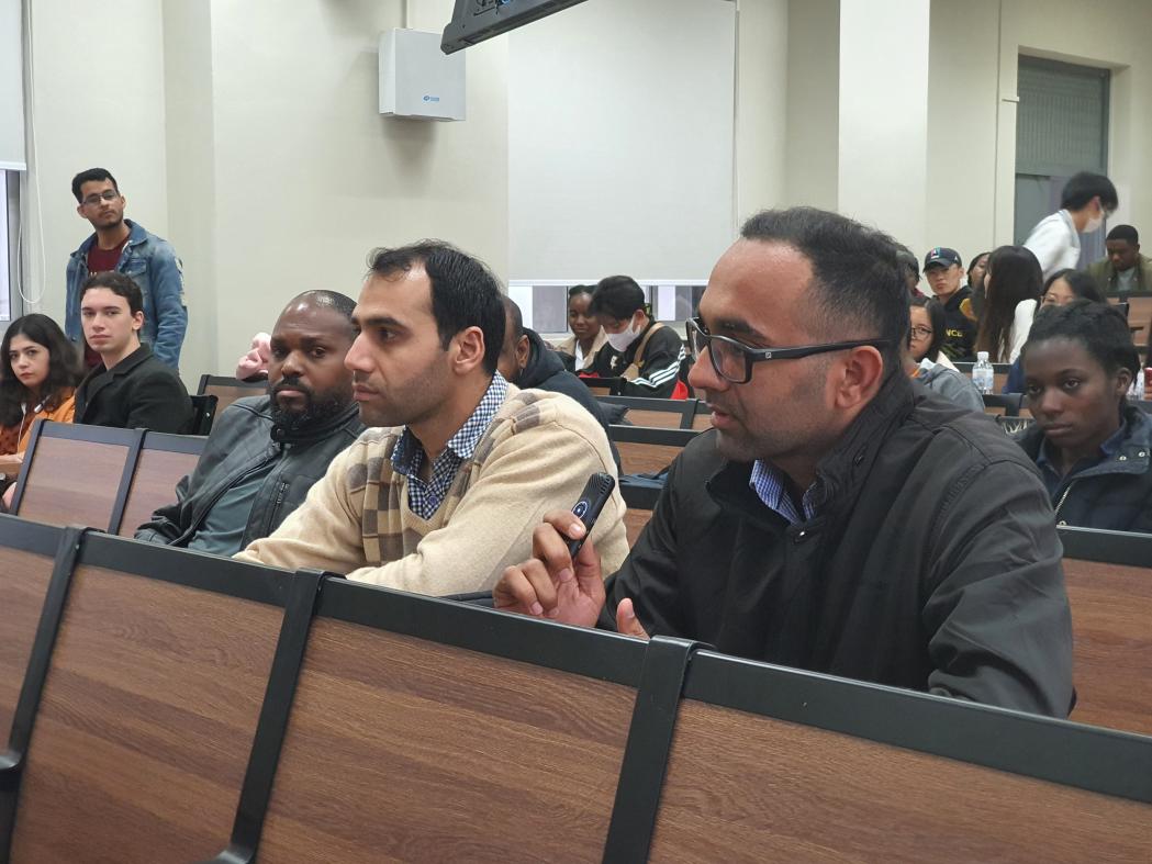 会上,教务处饶凯平老师首先向大家介绍了教务系统的使用方法,以及缓考、重修等办理流程;研究生院康迪老师细致解读了研究生阶段的培养计划、毕业要求等相关事项;国际教育学院曹心璐老师、王诗雨老师、金楠老师分别就学业事项、缴费、生活管理、消防安全及奖学金申请等工作进行了详细介绍。
