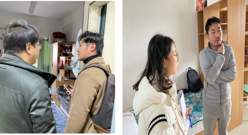 为进一步贯彻学校相关工作精神,加强学生宿舍安全工作,进一步消除学生宿舍安全隐患,确保学生生命财产安全,12月27日,国际教育学院副院长潘荣杰带队,与学院辅导员倪可馨和陈帅奇共同走访学生宿舍,开展2023-2024学年冬季留学生宿舍安全检查工作。