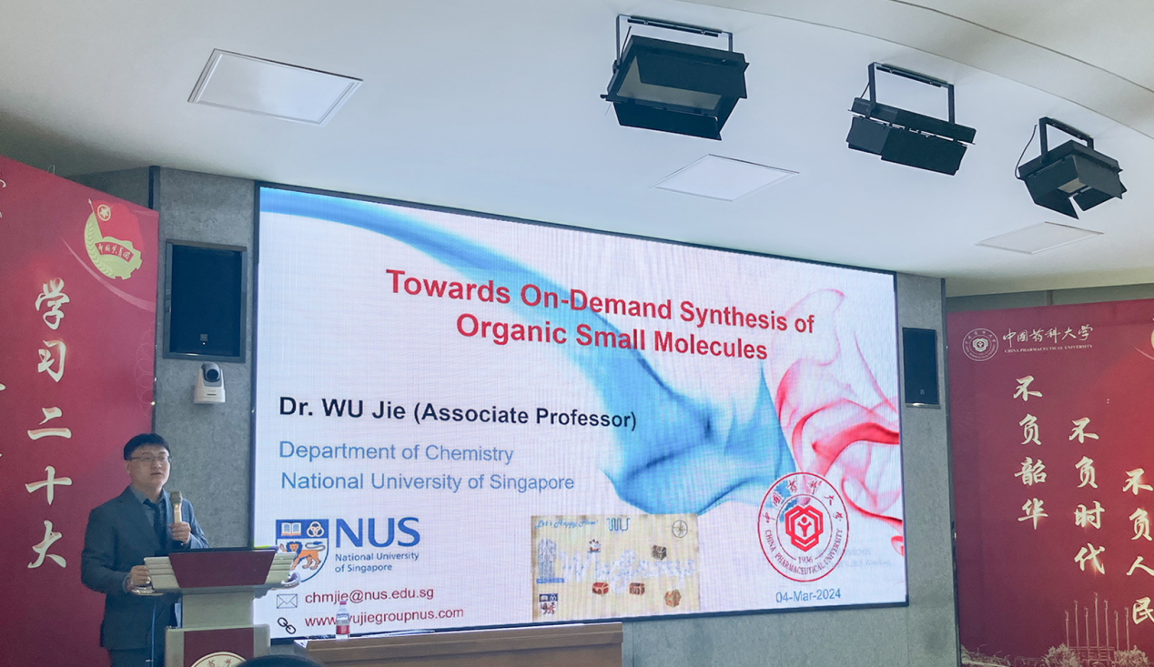 为了进一步提升工学院制药工程学科的科研水平,加强学术交流,35日,新加坡国立大学教授吴杰应邀来访我校工学院,并在江宁校区教学楼E105学术报告厅作了题为“On-Demand Synthesis of Organic Small Molecules”的学术报告,报告会由工学院院长蔡挺主持。