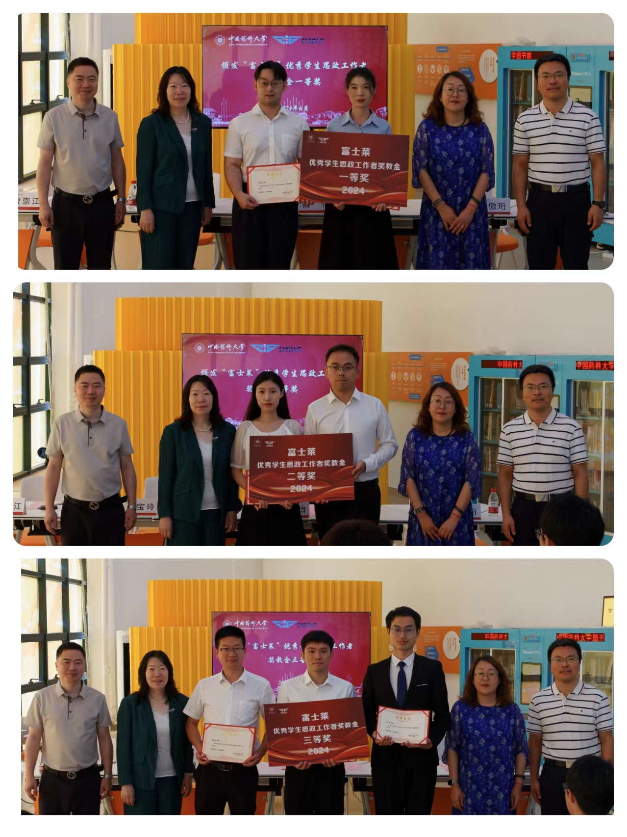 首先,曹崇江副院长宣读2024年度“富士莱”优秀学生思政工作者奖教金表彰决定。随后,钱怡总监和院领导依次为获奖教师颁奖并合影留念。