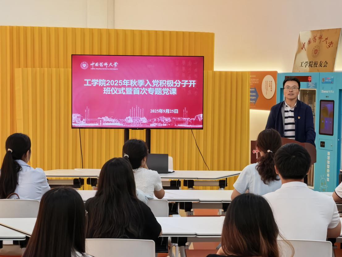 为深入学习贯彻党的二十大精神,全面落实新时代党的建设总要求,深刻领悟“两个确立”的决定性意义,增强“四个意识”、坚定“四个自信”、做到“两个维护”,9月25日中午,工学院2025年秋季入党积极分子培训班开班仪式在文华苑·匠行“一站式”学生社区举行。工学院党委副书记王傲珩出席仪式并讲话,全体入党积极分子参加仪式,开班仪式由组织员陈旦芝主持。