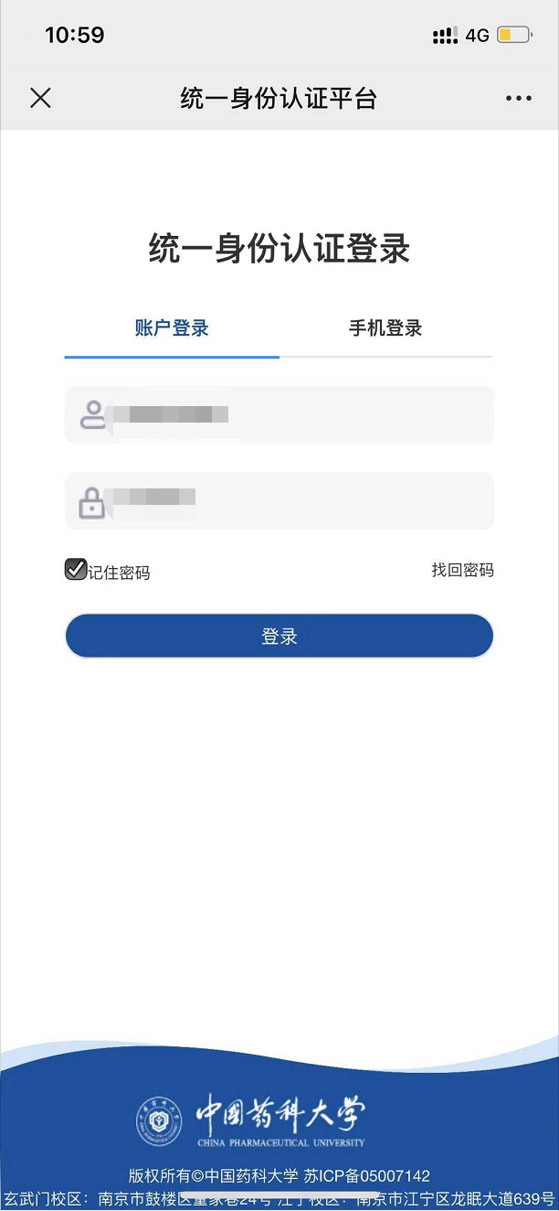 使用统一身份认证账号密码登录;Login Campus Net account;