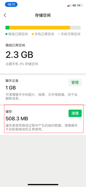 如上两种操作方式,还不能清除缓存,可尝试退出微信账号,关机重启。