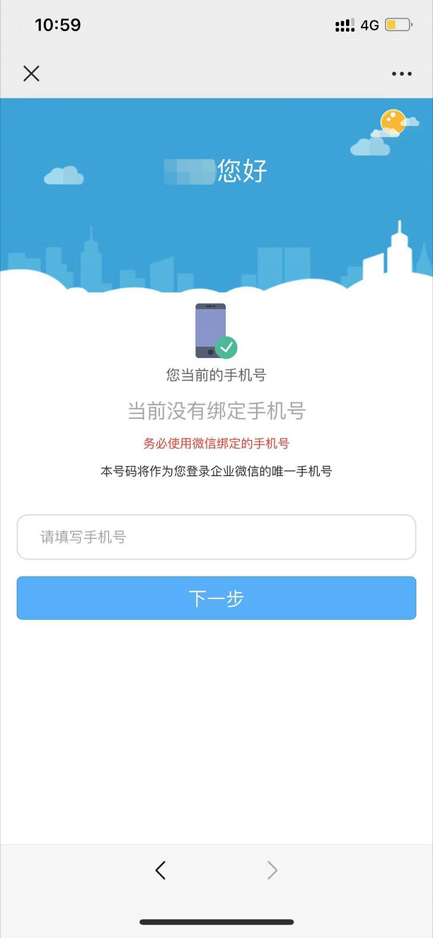 输入微信绑定的正确手机号后点击下一步;Enter the mobile phone number bound with personal WeChat