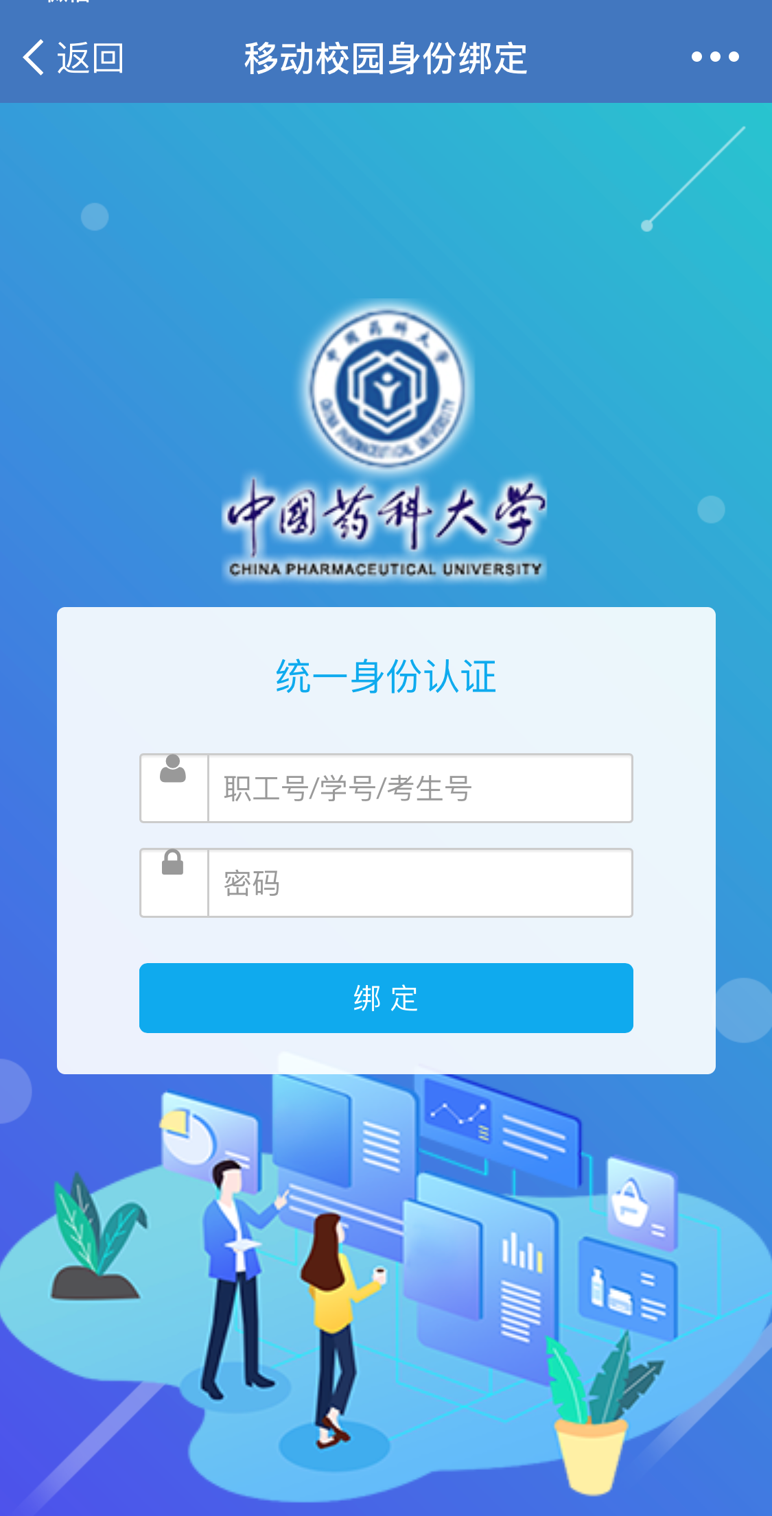 【工作台】中找到【我的门户】应用,使用统一身份认证账号密码登录,显示绑定成功完成校园身份绑定。