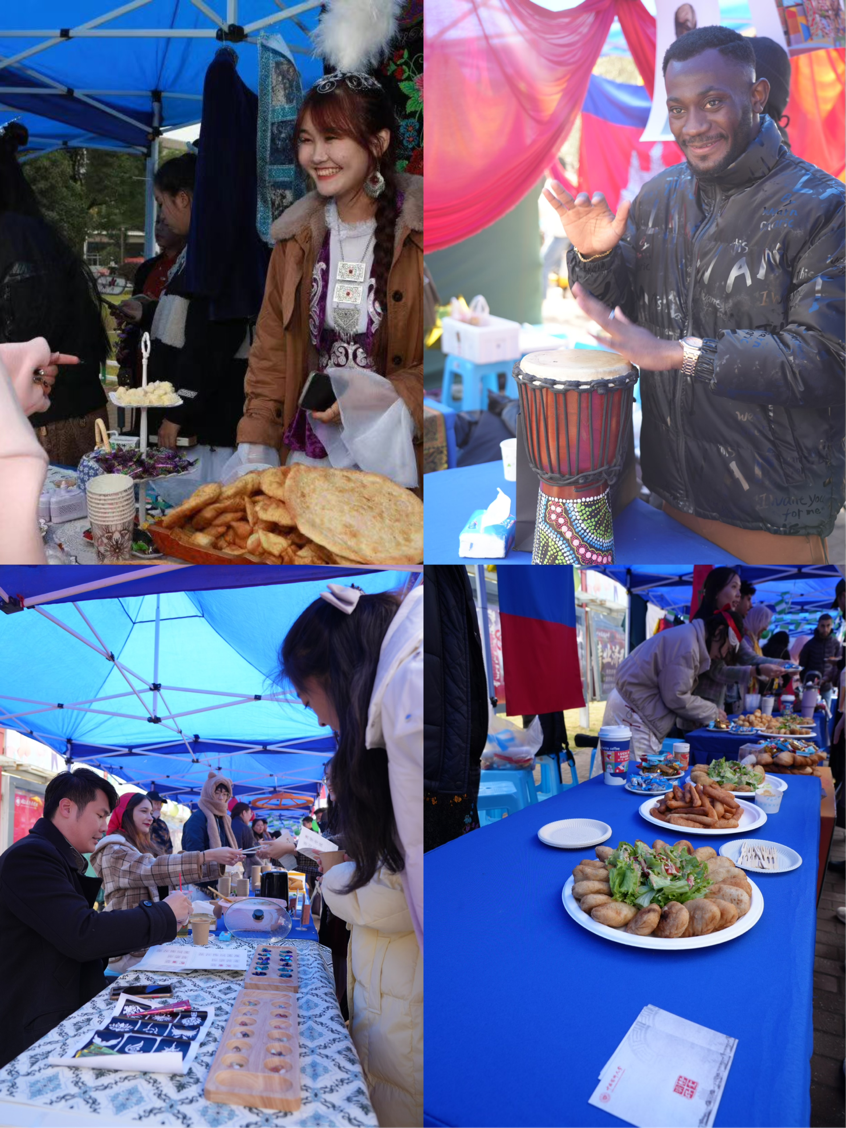 At the same time, the "Meet the World" Cultural Hut Tour was opened. Students from nearly 30 different countries and regions set up a national-style exhibition area, displaying the unique culture, traditional food, clothing, and traditional handicrafts. Students enthusiastically introduced their own country's folklore anecdotes and cultural characteristics. The atmosphere was warm and cheerful. In addition, there were Chinese folk culture huts and ethnic minority huts on display. The cultural hut created a platform to interact and exchange ideas so that their understanding of each other's different cultures became deeper and their friendship was sublimated.