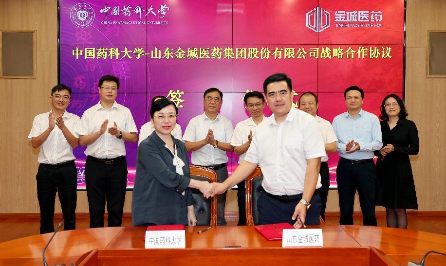 签约仪式上,金城医药副总裁张忠政与我校药学院尹莉芳教授作为双方代表签署战略合作协议。校长郝海平与金城医药董事长赵叶青共同为“世界杯直播-金城医药女性健康药物创新中心”揭牌。