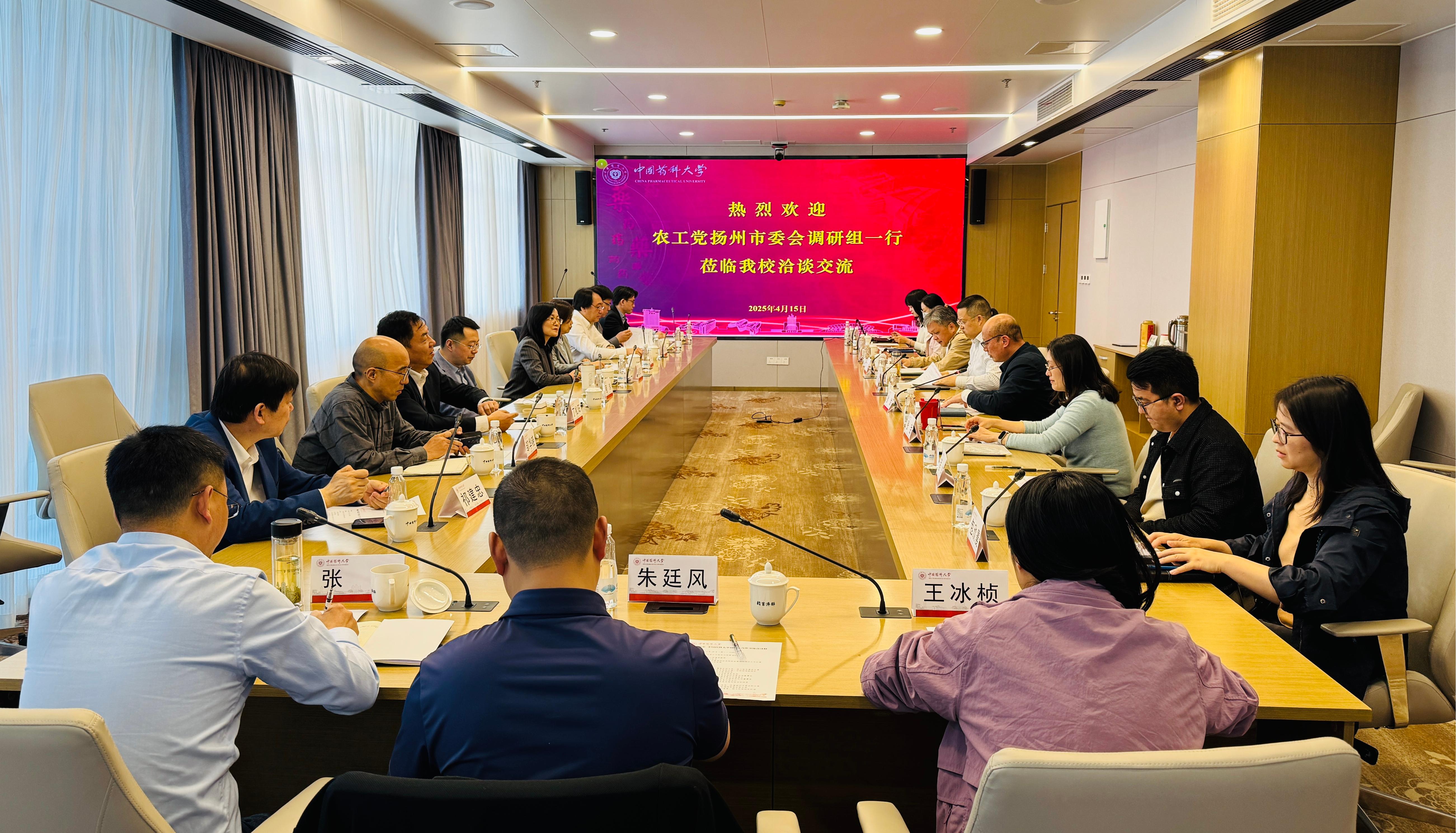 4月15日下午,扬州市人大常委会副主任、农工党市委会主委赵建芳一行到访我校调研交流。副校长姚和权及相关职能部门、农工党药大支部教师代表等参加会议。会议由科学技术研究院副院长狄斌主持。