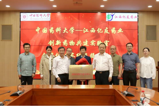 4月26日,“世界杯直播与江西亿友药业创新药物共建实验室”(以下简称“共建实验室”)签约及揭牌仪式在我校举行。江西亿友药业张嵩董事长、张对良总经理、徐卫国副总经理;我校科学技术研究院正处级领导李志裕、副院长狄斌、教授代表出席仪式。