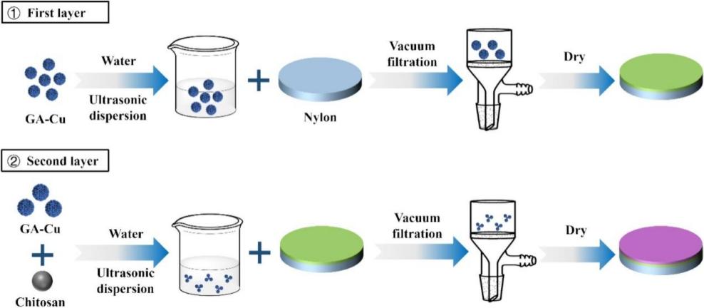 图3.GA-Cu@CS/GA-Cu/nylon膜的制备示意图