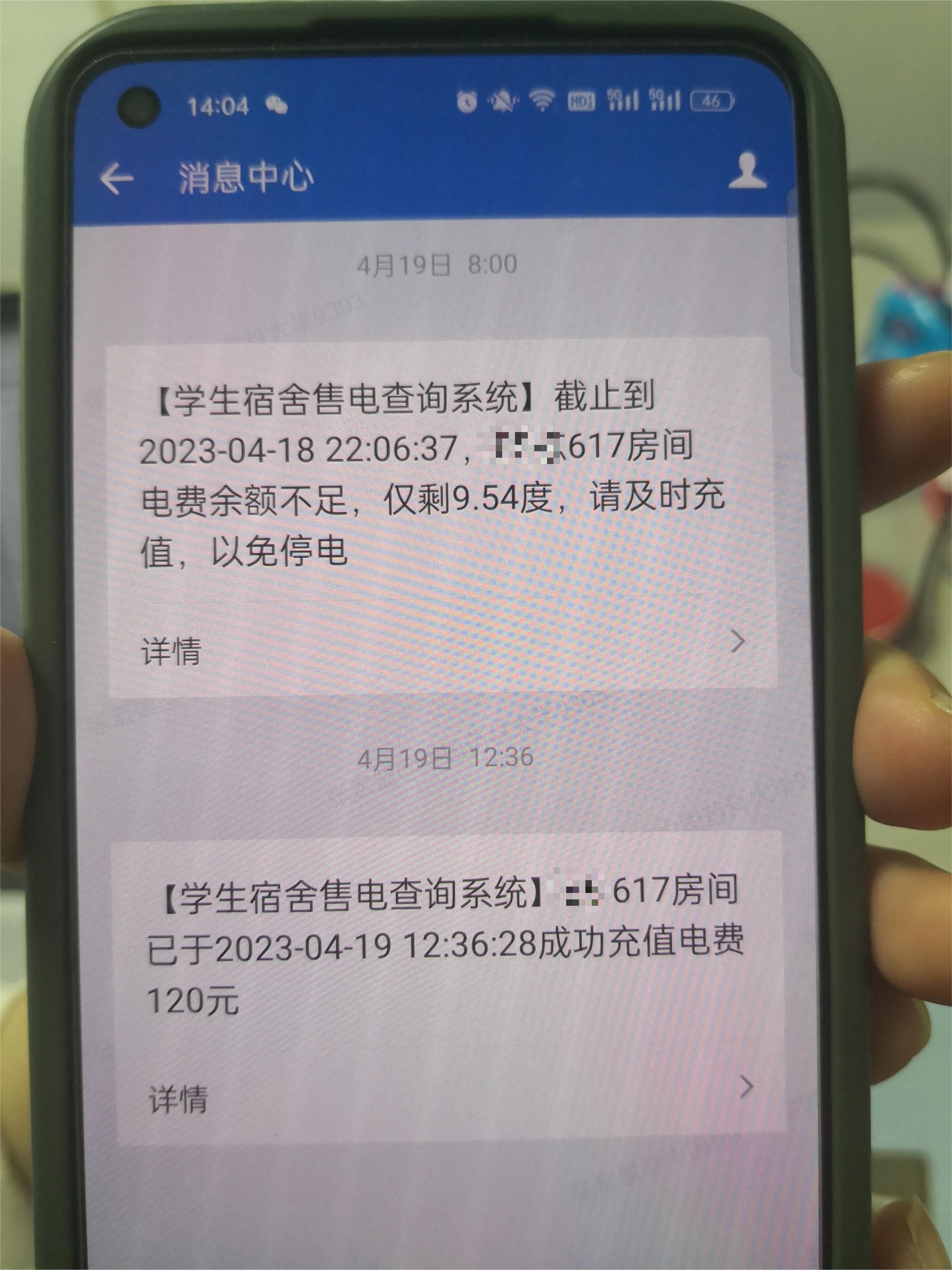 2.购电成功,推送给购电学生,包括时间、房号、购电金额。