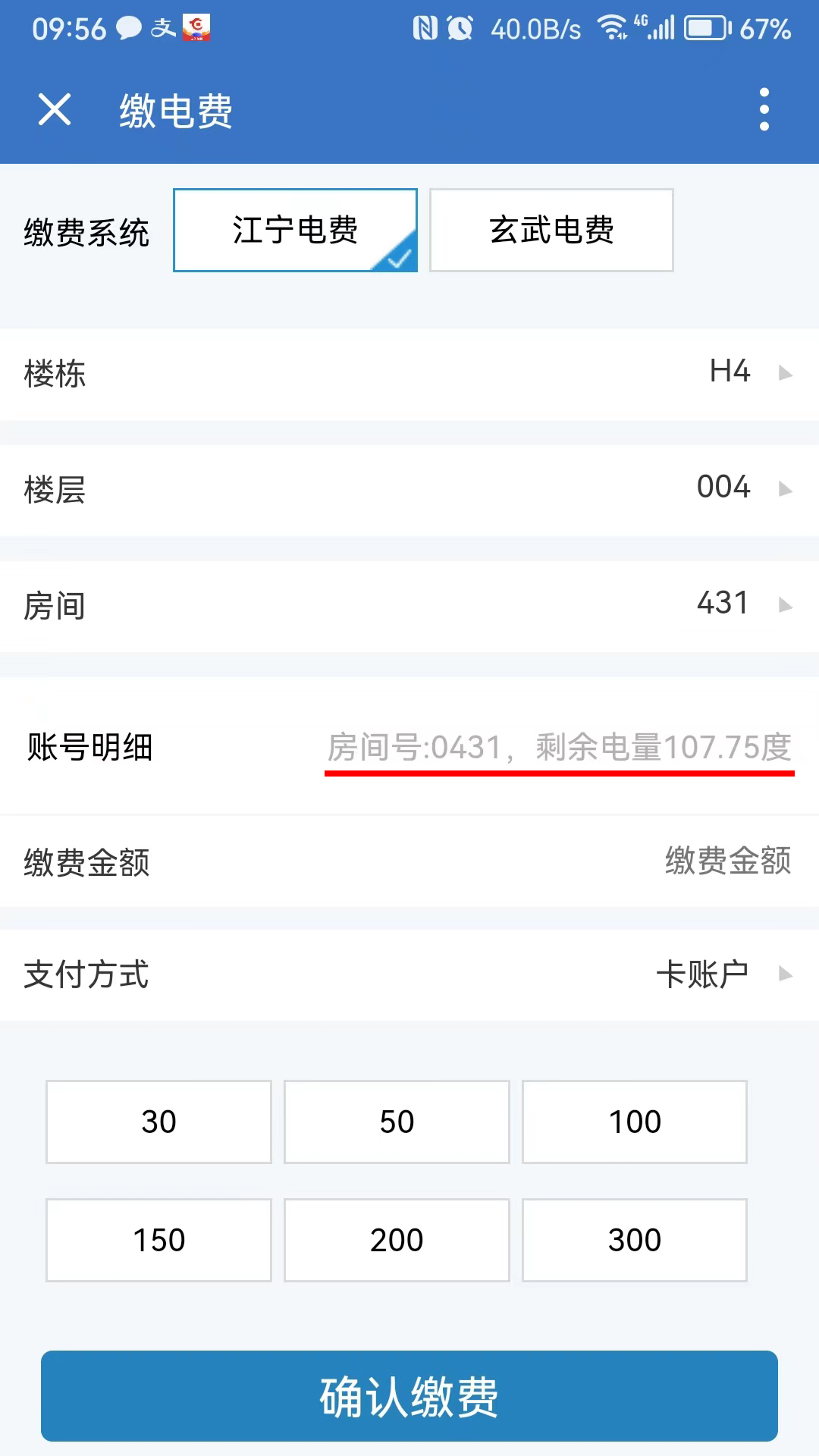 3.人工方式:工作时间在计财处柜台缴纳电费,凭单到江宁校区E组团学生服务大厅或玄武门校区科研大楼物业办公室人工充电。