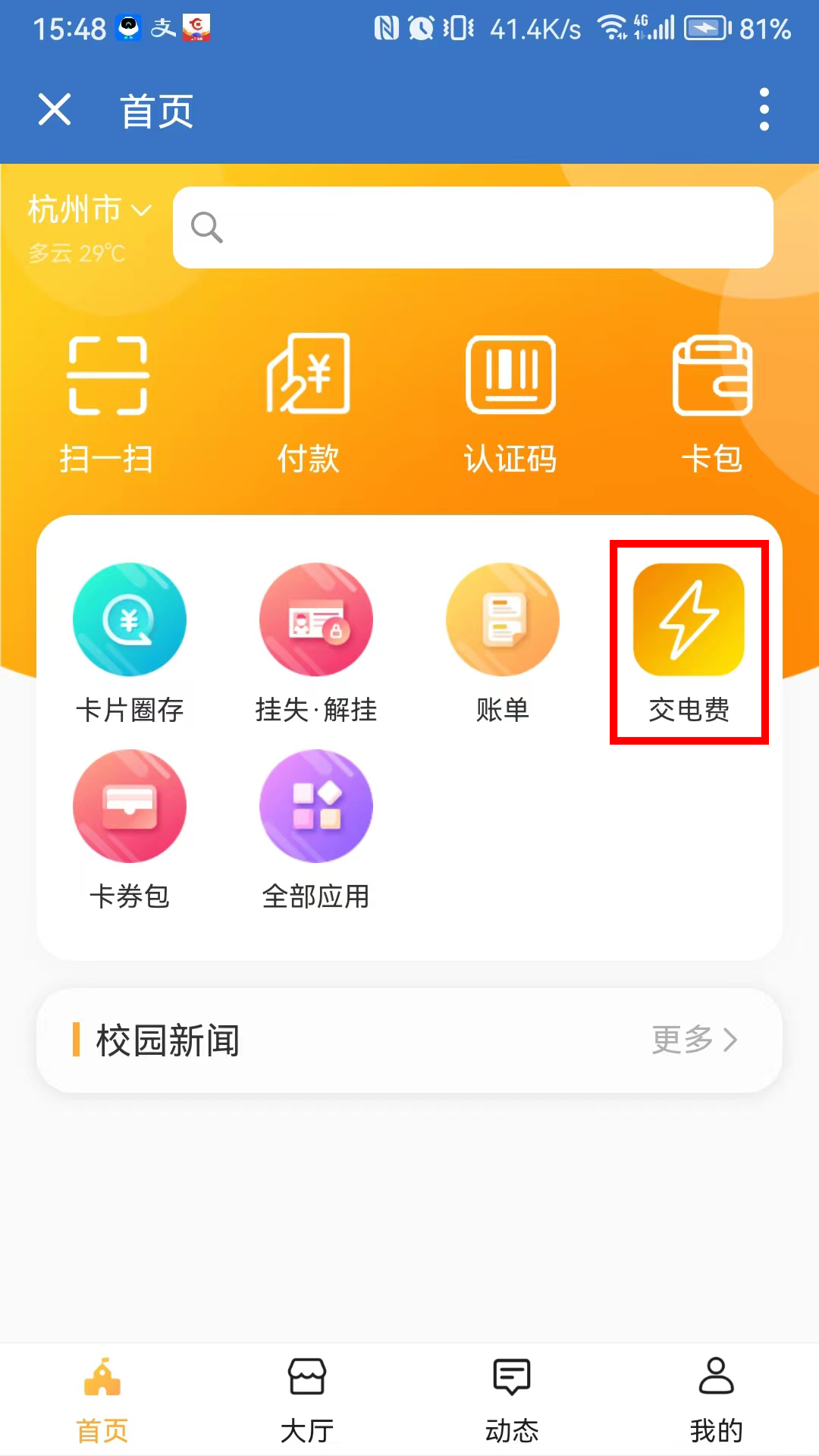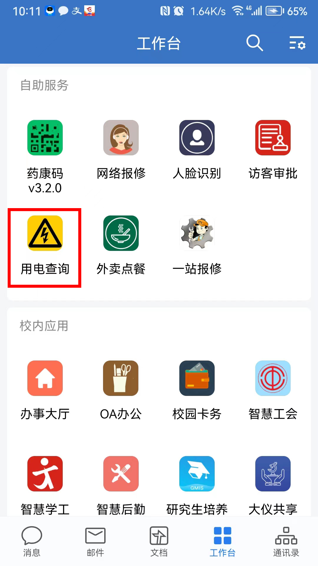 2.线上方式:校园网内,通过企业微信内的校园卡务应用的交电费,购买电量。