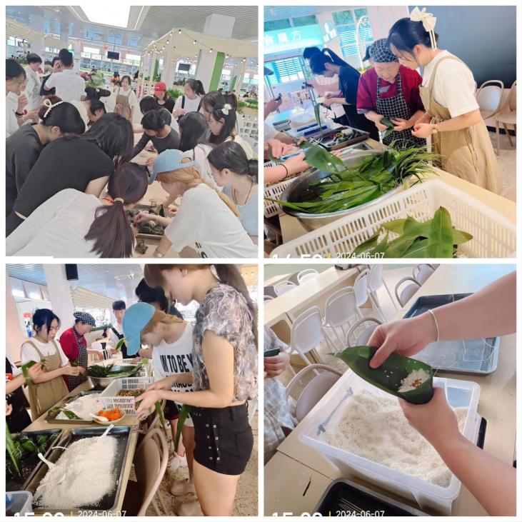 二食堂三楼开展“毕业留忆,粽情端午”活动,食堂工作人员提前准备好粽叶、糯米、红枣等新鲜食材,邀请专业的包粽子师傅前来指导,同学们围在一起,跃跃欲试,跟着师傅处理粽叶、浸泡糯米、搭配馅料,粽叶在手中翻飞,包出了一个个棱角分明、结实美观的粽子。毕业生们在学校度过了一次难忘的端午节。