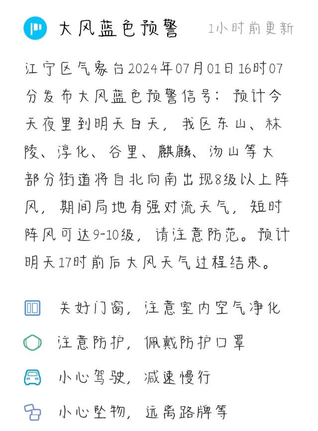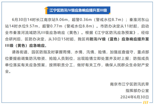 根据南京市气象台、江宁区气象台、江宁区防汛抗旱指挥部办公室等通知最新信息: