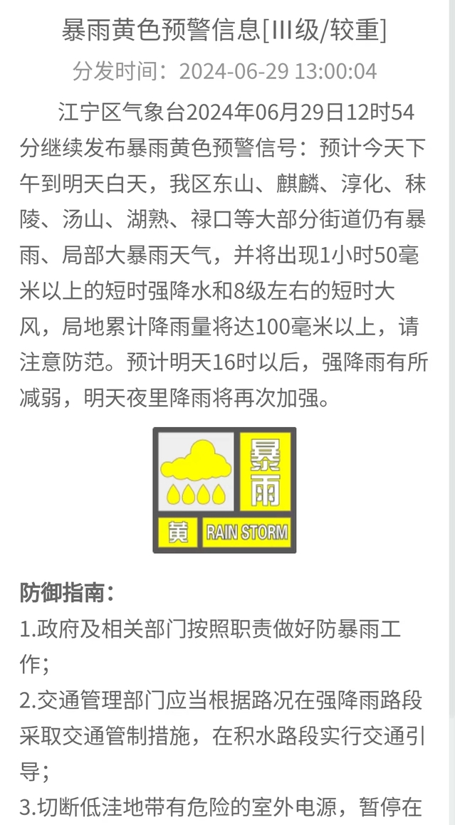 根据江苏省气象台、南京市气象台、江宁区气象台信息: