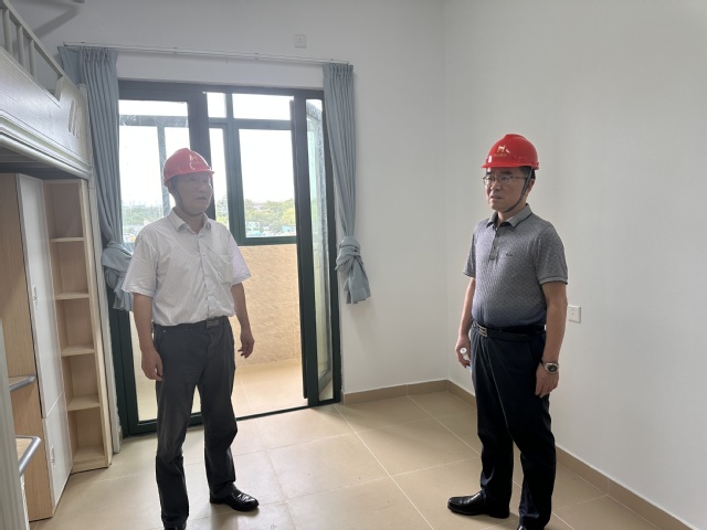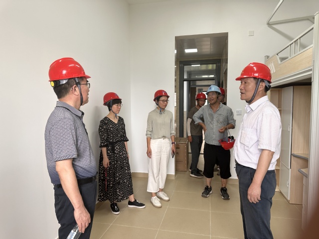 金能明书记一行先后检查了江宁校区研究生公寓四期建设、学生宿舍G11修缮、实训楼及实验办公楼修缮项目。在施工现场,金能明书记听取有关负责人对项目安全生产、设计规划、工程进展等方面的情况汇报,重点检查维修改造工程的关键部位、施工细节等。