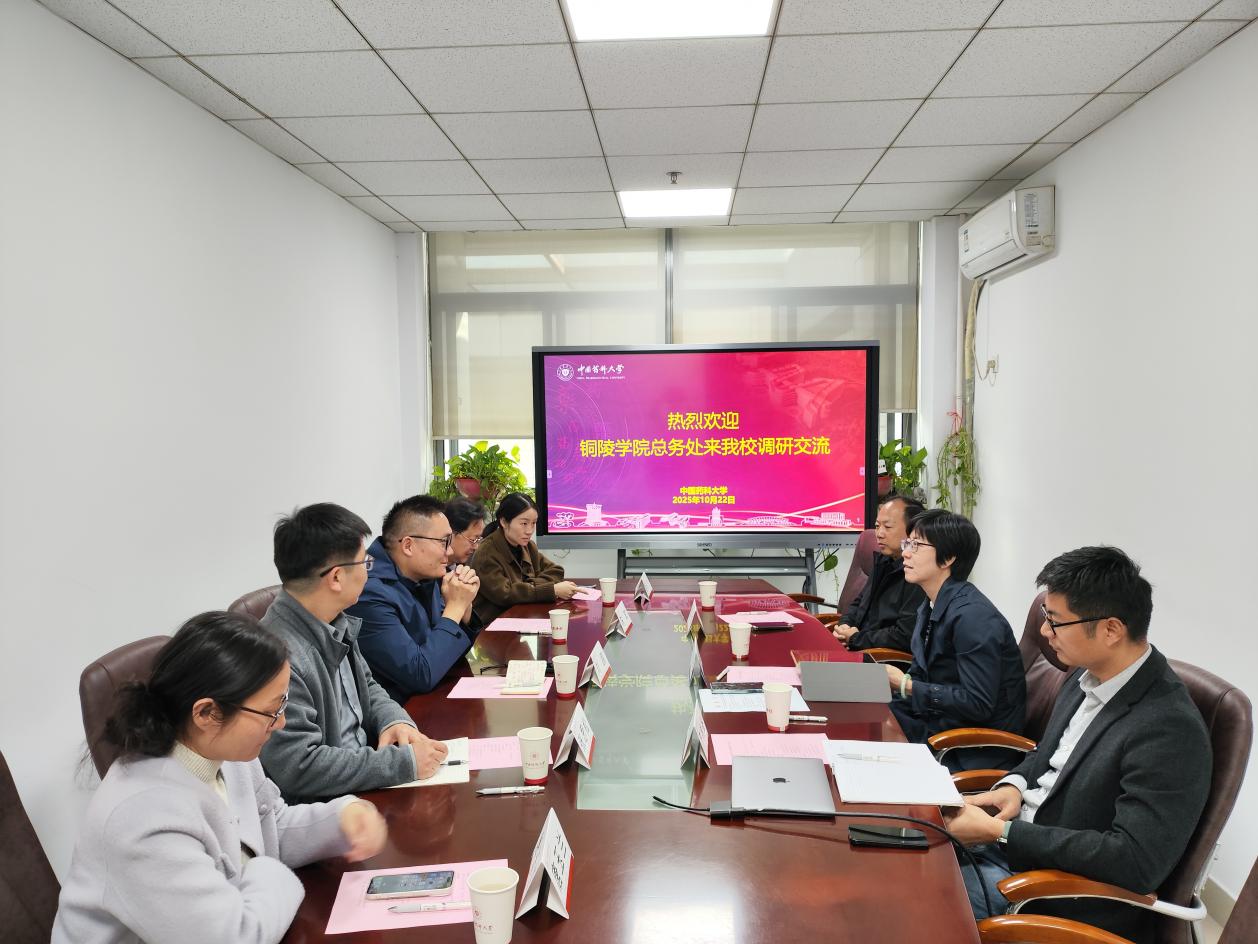 10月22日下午,铜陵学院总务处(基建办公室)处长刘鹏一行来学校调研交流。学校基建后勤处处长贺丽君、副处长夏锦鉴及相关科室人员接待了来访客人,并在江宁校区行政楼319会议室举行座谈。