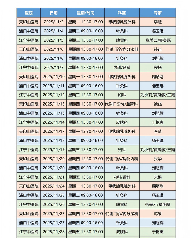 现将11月至12月专家门诊安排通知如下,请有需要的师生提前预约,合理安排就诊时间。