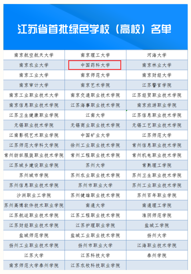 近日,江苏省教育厅公布江苏省绿色学校(高校)评选结果。我校获评江苏省首批绿色学校(高校)。
