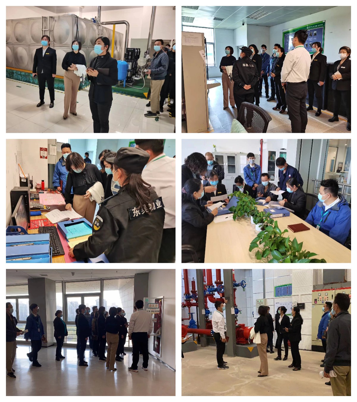 此次互查活动主要检查楼内消防监控控制室、生活水泵房、消防泵房、楼层强电间、楼层空调机房等区域。互查人员重点检查了这些设备间的卫生、台账记录等情况,抽查值班员对于消防联动火灾报警控制器的熟悉度,并提醒有火灾报警时要及时上楼查看现场,做好相关记录。检查完成后,各家物业公司一起讨论设备巡查重点,查看巡查记录,相互学习以促进工作进步。